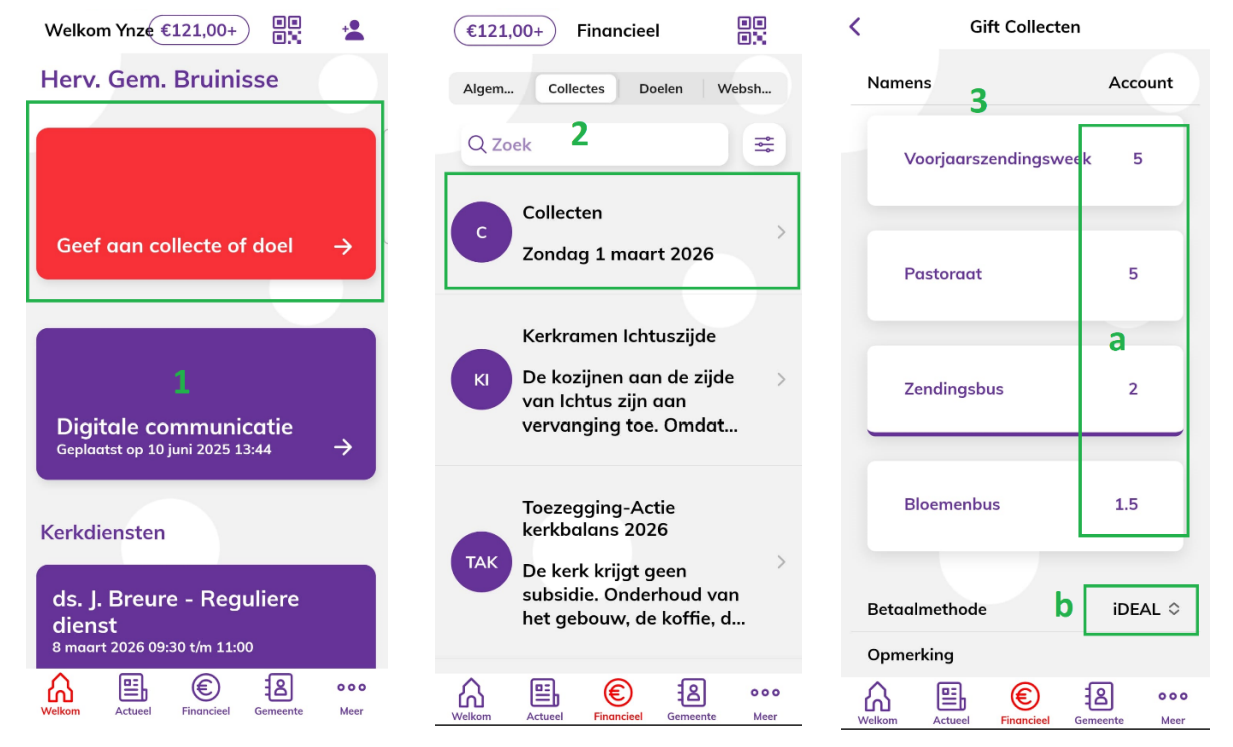 - (1) Ga naar “Geef aan collecte of doel”